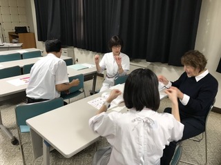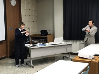 11月20日(火)に6回目の講習会を開催しました。 今回のテーマは「治療」です。 注射や薬の飲み方(食前・食間・食後・毎食後・寝る前) 、発熱や頭痛など症状にかかわる手話を学んでもらいました。 普段病院で説明する内容だったこともあり、対話形式での学習は楽しかったという感想も聞かれました。 |